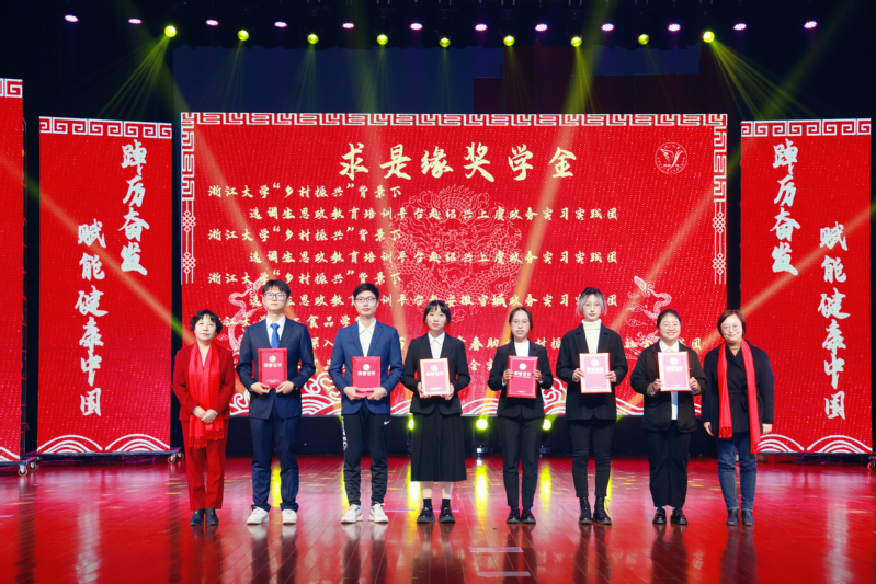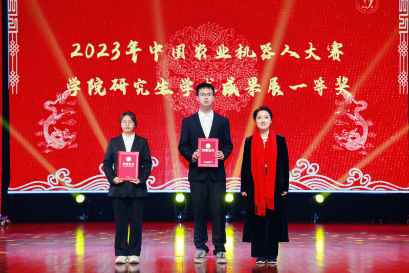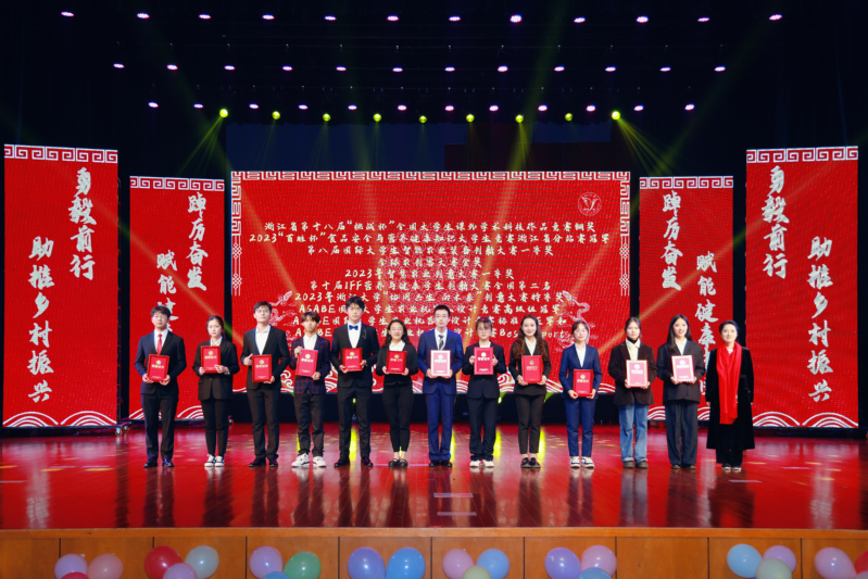 学院为2023年国家奖学金、食生缘奖学金、康而达奖学金、求是缘奖学金、神龙奖学金获得者,以及浙江省第十八届“挑战杯”全国大学生课外学术科技作品竞赛铜奖、2023“百胜杯”食品安全与营养健康知识大学生竞赛浙江省分站赛冠军、第八届国际大学生智能农业装备创新大赛一等奖、全球农创客大赛金奖、2023年智慧农业创意大赛一等奖、第十届IFF营养与健康学生创新大赛全国第二名、2023年浙江大学“协同共生 向未来”创意大赛特等奖、ASABE国际大学生农业机器人设计竞赛、2023年中国农业机器人大赛、学院研究生学术成果展一等奖的学生代表隆重颁奖。祝贺他们获得荣誉,并激励他们苦练过硬本领,主动担当作为,在民族复兴征程中贡献浙大力量。