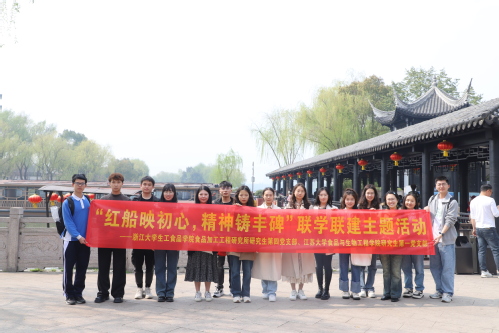 为深入学习贯彻习近平新时代中国特色社会主义思想,全面贯彻落实党的二十大和二十届二中全会精神,引导学生铭记红色记忆,传承“红船精神”,赓续红色血脉,2024年3月24日,学院开展“红色生食会”之嘉兴南湖参观研学活动。活动由学院食品加工工程研究所研究生第四党支部与其结对支部江苏大学食品与生物工程学院研究生第一党支部联合举办。学院团委书记梅玫与江苏大学食品与生物工程学院团委书记姚丹带队开展。