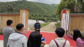 在参观八清农场及山车坞露营基地后,校友们来到红地毯铺就的八清农场大门前,举行了简短的生工食品学院校友分会交流基地揭牌仪式。专程前来的径山镇副镇长章晓明,学院校友分会会长朱勇良,副会长费苹儿、林国平、李忠先、李建平,学院原院长朱松明为校友交流基地揭牌。楼淼龙校友介绍了八清农场的场地物色、建设投入、“八清”蕴含的意义及八清农场的发展愿景,热忱邀请学院校友到径山丰富的旅游景点走走看看,到八清农场、水车坞茶聚交流、亲子活动。章晓明副镇长、朱勇良会长发表了热情洋溢的致辞,高度肯定、赞赏楼淼龙校友心系家乡、情系校友,为美丽、富裕乡村建设、振兴及母校事业发展与校友联络积极投入、奉献力量。章晓明副镇长热情邀请浙江大学生工食品学院老师、校友到径山考察指导、旅游观光。朱勇良会长由衷钦佩楼淼龙校友的校友情怀,衷心感谢楼淼龙校友为学院校友联谊交流提供了得天独厚的平台基地,并寄语学院校友加强联系交流,增进校友情谊,加强校友之间及校友与学院的交流合作,促进校友、学院、学校事业发展。学院发展联络办公室主任、校友分会秘书长邹黎明主持了揭牌仪式。