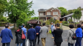 中午,校友们在青山绿水环抱的童子湖农庄举杯共饮、愉快相聚。午餐后,校友们来到时任浙江省委书记习近平曾经考察访问、肯定“众人的事由众人商量”的径山镇小古城村参观,听取了小古城村民主商议、农民致富、美丽乡村建设、乡村振兴等方面的介绍。返回路上校友们还顺访了原农大畔坂茶场-浙江大学茶学实验基地。