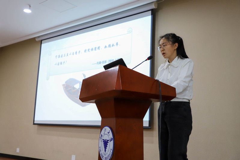 他们结合典型案例,弘扬廉洁精神。黄俏分享了古代杨震、张伯行,以及现代焦裕禄、张桂梅的廉洁模范事迹,呼吁青年学子要克己奉公、清廉自守。金利从东汉名臣刘宠家无货积、替百姓办实事的故事到廉洁精神在生活中如何实践,强调要以史为镜,用行动来弘扬廉洁文化。崔蕊艳从大学生不廉洁行为的心理因素出发,分析其与贪官腐败行为的相似性,警示广大青年要抵住诱惑,崇廉尚洁,树立正确的价值观和人生观。