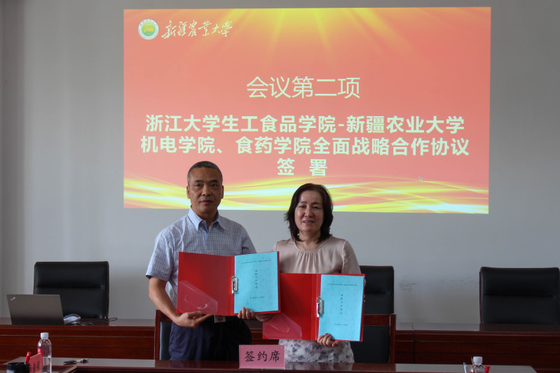 郭俊先、杨晓君分别介绍了新疆农业大学机电学院和食品科学与药学院基本情况,并对浙江大学长期以来支持和帮助新疆农业大学发展表示感谢,希望围绕“八大产业集群”中棉花和纺织服装、粮油、绿色有机果蔬、优质畜产品等战略性新兴产业集群建设,发挥浙江大学在科研创新和人才高地的优势,结合新疆科技人才政策和资源优势、区域龙头企业研发与产业化优势,解决产业中的卡脖子技术难题,强化科技成果的转移转化,共同推动新疆特色产业的高质量发展。