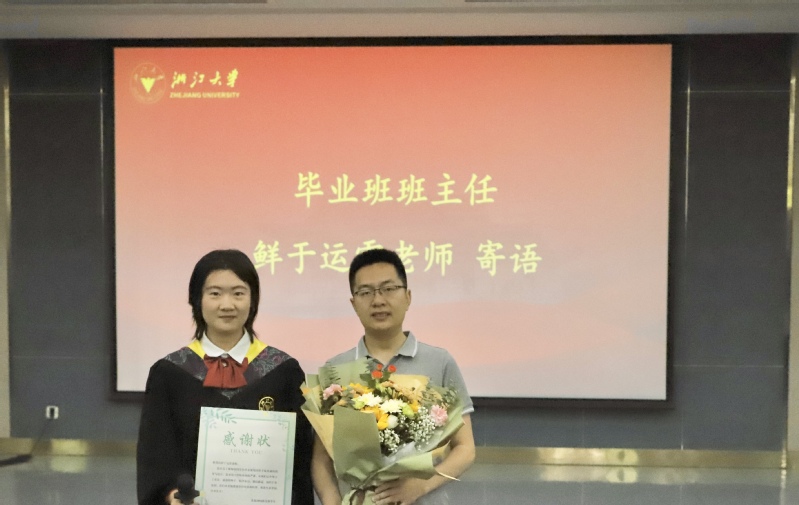 毕业班学生代表为毕业班班主任代表、毕业班德育导师代表送上感谢状并献花。毕业班班主任、德育导师代表李莉寄语毕业生要保持初心,母校永远是大家坚实的后盾。毕业班班主任鲜于运雷寄语毕业生要保持乐观的心态,并且祝福毕业生前程似锦。德育导师代表杨暄寄语毕业生要秉持求是创新精神,保持对知识的渴望和好奇。德育导师代表叶尊忠寄语毕业生要内心强大,无惧前行道路上的风雨,为祖国现代化建设添砖加瓦。