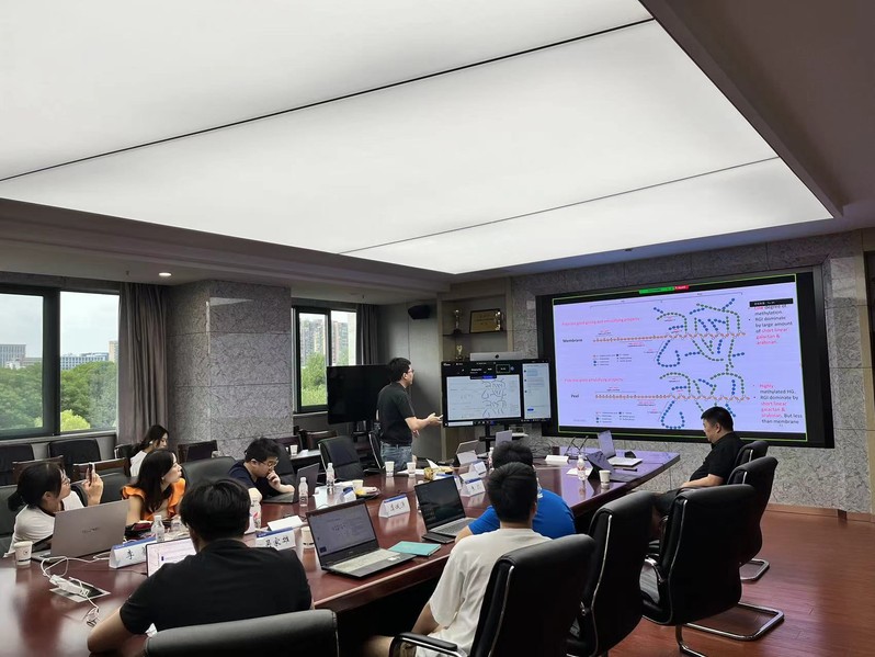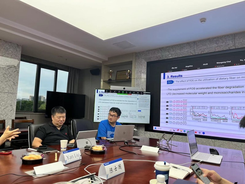 参会同学们针对各自研究的课题与Liu研究员一行展开积极且精彩的交流。最后,陈士国教授和Liu研究员就未来的合作进行了深入探讨。两位专家都希望能够整合各自的优势,解决当前在碳水化合物研究中的一些挑战。双方还讨论了合作的具体细节,包括可能的研究计划和发布时间表,以确保合作能够顺利进行并取得积极成果。