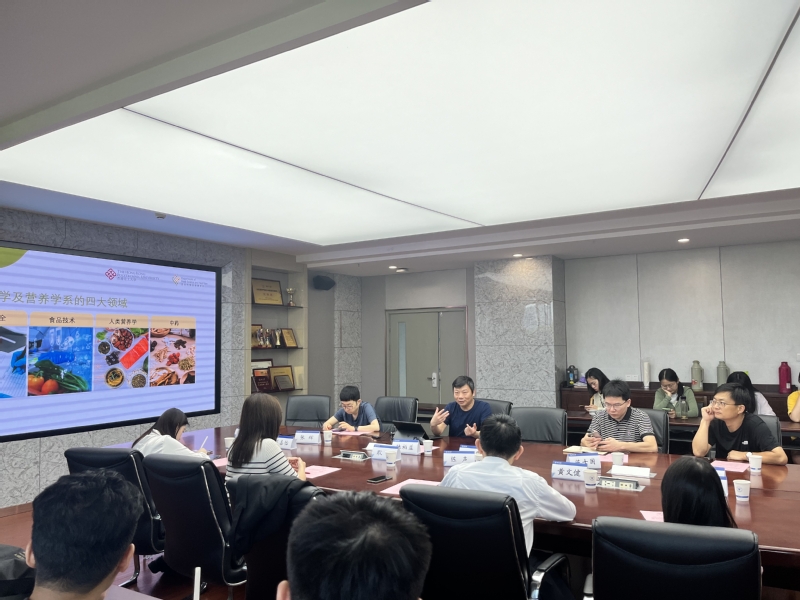 2024年7月22日,香港理工大学食品科学及营养学系陈声教授一行来访bat365正版唯一官网,与bat365正版唯一官网食品科学与营养系师生开展了深入的教学科研交流。本次座谈旨在加强两校在食品科学与营养学领域的合作,共同推动学科发展与创新。学院院长刘鹰、食品科学与营养系主任陈士国、食品学科教授、本科生和研究生参加了本次交流。