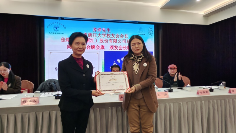 湖州浙大校友会副会长、乡村振兴分会会长邵梅代表湖州浙大校友会及齐洋会长向学院湖州校友分会当选会长费苹儿颁授校友分会铭牌及会长聘书。新当选会长费苹儿向梅成等嘉宾校友颁授校友分会顾问聘书,向杨建平等校友颁授副会长聘书。常务副会长兼秘书长杨建平向王捷等校友颁授副秘书长聘书,副会长王建祥、慎志浩向朱建国、等校友颁授校友分会理事聘书。