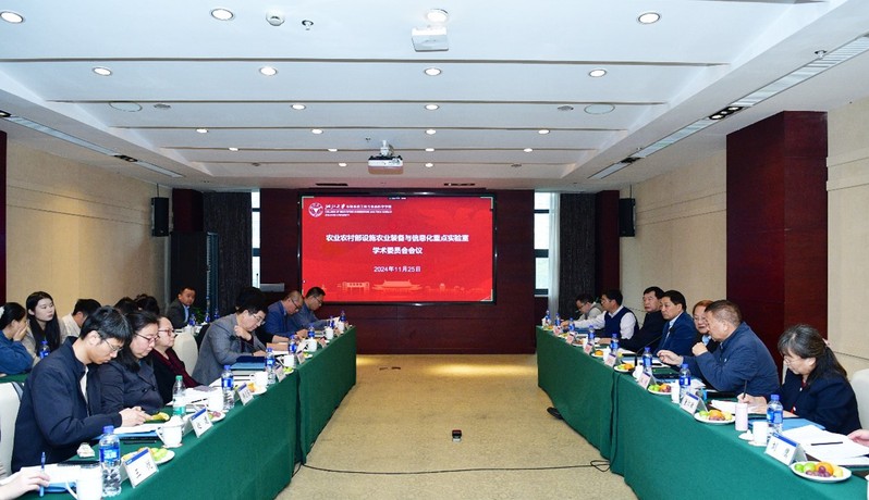 2024年11月25日,农业农村部设施农业装备与信息化重点实验室学术委员会会议在浙江大学圆正启真酒店隆重举行。重点实验室学术委员会主任、中国工程院院士、华南农业大学罗锡文教授,国际欧亚科学院院士、中国农业工程学会常务副理事长朱明研究员,农业农村部设施农业工程学科群主任、中国农业大学李保明教授,中国水产科学研究院渔业机械仪器研究所所长陈军研究员(线上),中国农科院农业环境与可持续发展研究所副所长董红敏研究员,江苏大学农业装备工程学院院长毛罕平教授等学术委员会委员,浙江大学、校科研院、学院有关领导以及重点实验室师生40余人出席会议。