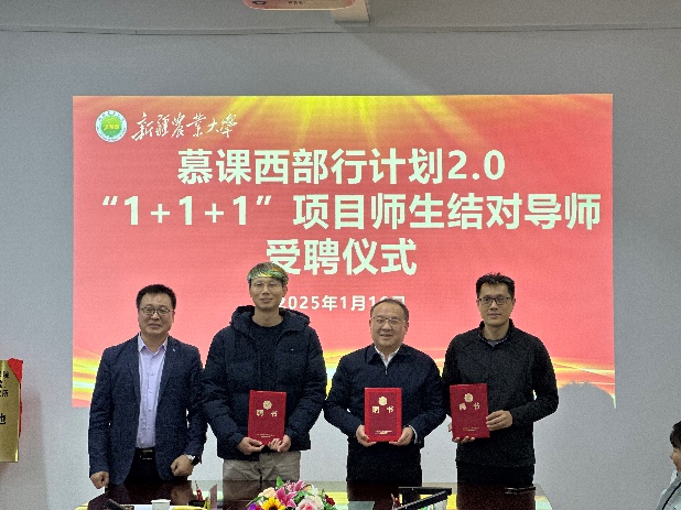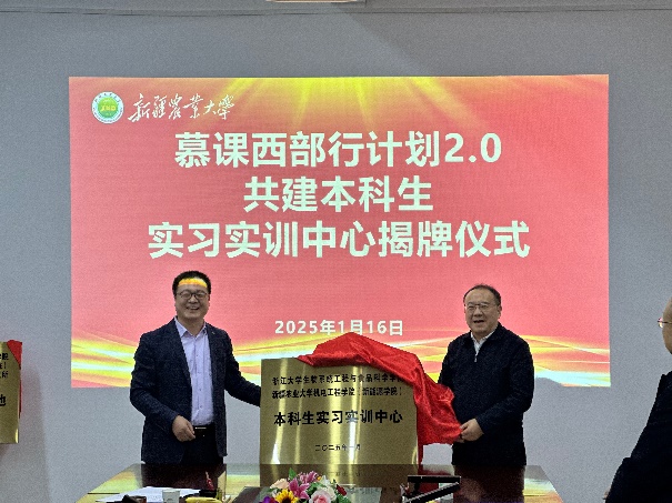 会议期间,两校正式启动了本科生实习实训中心共建项目与“1+1+1”师生结对项目,分别完成了签约、揭牌仪式与导师受聘仪式。本科生实习实训中心设址于新疆农业大学,拟引入大型仪器设备,进一步完善实验教学体系,满足学生多样化、个性化的科研训练需求。“1+1+1”师生结对项目旨在通过浙江大学、新疆农业大学的资深教师、优秀研究生分别与试点专业的本科生结对,为学生在学业、就业、生活等方面提供个性化指导,全方位助力学生成长。