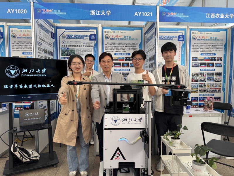 此外,指导教师何勇、冯旭萍、刘羽飞,研究生黄震宇、杨宁远、张昊阳、蔡家一、曹润洲共同完成的作品《温室多场景草莓表型自主检测系统》荣获一等奖;指导教师李晓丽、叶恭银,研究生姬旭升、叶思潭、张雪晨、张文凯、罗学伦共同完成的作品《面向复杂田间环境农作物信息智能感知的无人机与机器狗协同监测装备》荣获一等奖;指导教师李晓丽,研究生于桦昊、张熠强、谭政冰、范西南共同完成的作品《摊青过程中茶叶在制品内外品质在线无损检测设备》荣获二等奖。