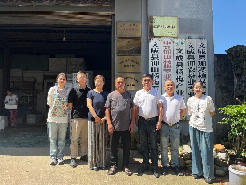 2025年6月26日-27日,浙江大学文成大健康产业联合研究中心常务副主任罗自生、办公室主任王友永、bat365正版唯一官网教授李莉、博士后李贞彪和研究生们一行赴文成县多个企业和合作社进行了实地调研和指导。26日,在文成县科学技术局副局长朱炳淼、主任邓昌斌、文成县科学技术协会主任赵晓宇陪同下,一行赴温州真果农业科技有限公司进行实地考察,针对杨梅采后销售、预冷关键技术、基地冷库设置等关键技术问题进行了详细研讨。