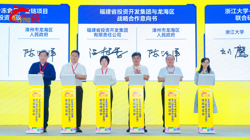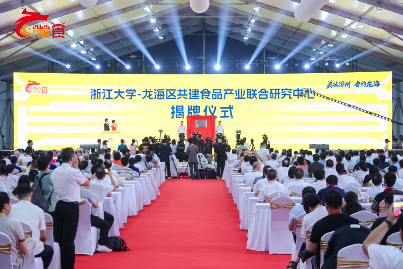 在开幕式后接着举行的龙海区产业招商大会上,浙江大学与漳州市龙海区人民政府签署“浙江大学-龙海食品产业联合研究中心”共建合作协议。学院院长刘鹰、龙海区副区长陈跃洋分别代表浙江大学及龙海区人民政府在共建合作协议上签字,浙江大学科学技术研究院常务副院长李寒莹见证签约并与龙海区区长陈艺章共同为“浙江大学-龙海食品产业联合研究中心”揭牌。