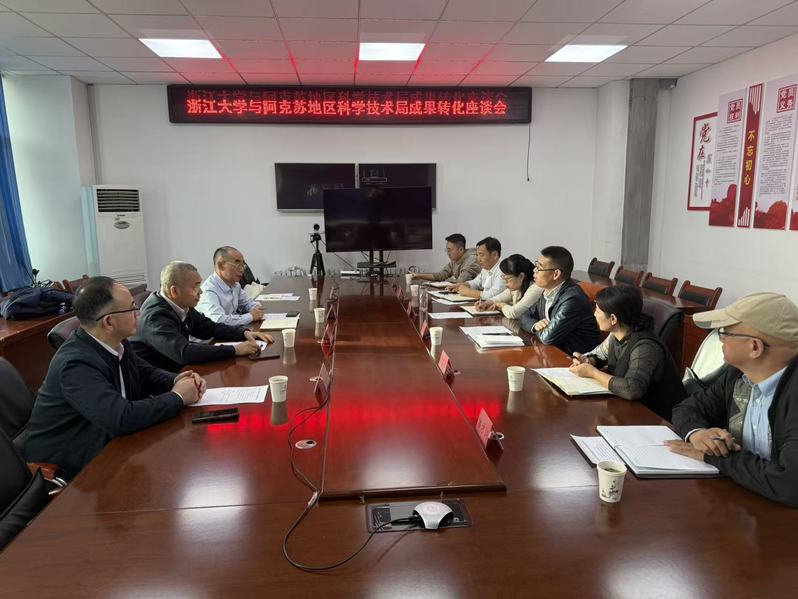 考察调研期间,李金林书记一行赴阿克苏地区科技局开展交流研讨。阿克苏地区科技局党组成员、副局长王力,地区科技局各科室负责人出席会议。罗自生介绍了浙江大学生工食品学院科研成果及转化情况。王力详细介绍了阿克苏地区科技项目、科技平台建设等方面的政策,并结合实际案例分析了科技援疆的实施路径。双方就科技项目援疆、科技平台共建、科技成果转化等方面进行深入交流。