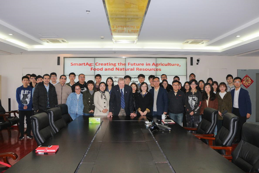 Prof. Norman R. Scott started with the introduction to the concept of intelligent agriculture. He believes that intelligent agriculture is a combination of scientific engineering technology and food production chain. The food production chain alone has various links including food production, food engineering, food package and food delivery, all of which contain important engineering application problems and scientific research problems to be solved. Prof. Norman R. Scott demonstrated the important impacts of intelligent agriculture and sustainable concept on agriculture, food and natural resources with special emphasis on the diverse new foods (including artificial proteins and other organic foods) developed by the rapid development of biotechnology. He also pointed out that scientific research has not only pushed forward the development of intelligent agriculture, but also created motivation for the transformation from traditional agriculture to intelligent agriculture; the rapid development of biotechnology has been increasingly expanding people’s life space and stimulating the birth of new food production system to formulate the future’s food production system, which further pushes forward the globalization of intellectual agriculture. Speaking of the broad implementation of technology in agricultural internet of things, Prof. Norman R. Scott resembled the agricultural big data as soil and petrol in the new era and the “infrastructure construction” in the field of agriculture, which further proves its essential impacts on intellectual agriculture’s application. He believes that the rapid development of intellectual agriculture has put forward higher requirements on the response and support of agricultural big data. Relying on agricultural big data, we will be able to realize the intellectual management of intelligent agriculture’s production system in a scientific manner. Prof. Norman R. Scott introduced the concept map of "green city", which combines agriculture with urban construction, and the functional modules and operation flow chart of future small-scale intelligent agriculture. “System makes it possible, but people make it happen”, says Prof. Norman R. Scott encouraging us to make a progress and make a difference in academic study and innovative application.